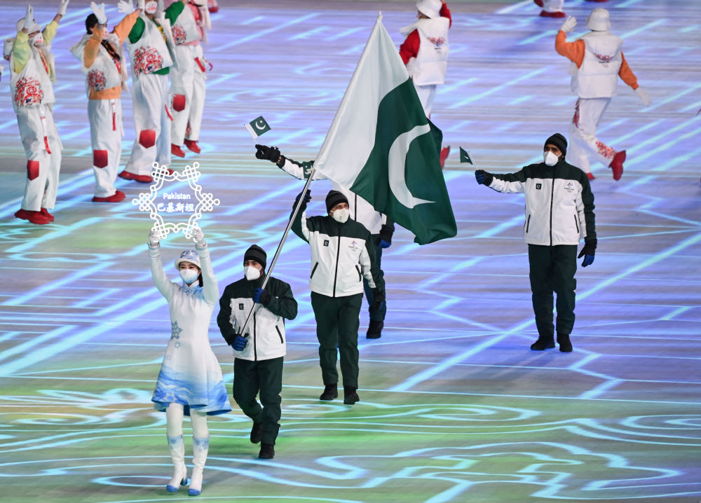 2月4日晚,第二十四届冬季奥林匹克运动会开幕式在北京国家体育场举行。图为巴基斯坦代表团在开幕式上入场。新华社记者熊琦摄