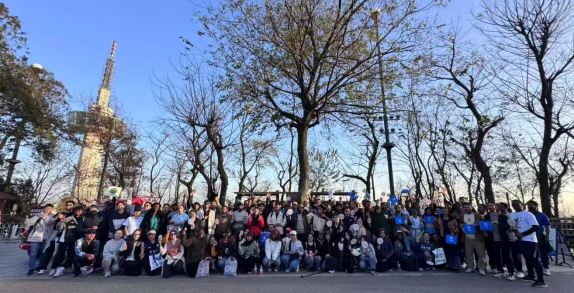 为增强趣味性与团队协作,沿途共设六个打卡点,各队需在指定位置完成创意合影。从图书馆前坪出发,到电视塔下登顶,一路欢声笑语,同学们在互助前行中增进了解,展现出青春的活力与风采。