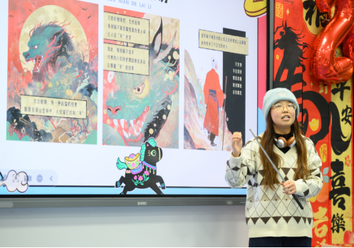 新春溯源,解锁吉祥祝福语。中国学生杨城娟带领大家探寻春节的千年起源,讲述“年”的传说,解读贴春联、守岁、拜年等传统习俗,同时带我们一同解锁“马到成功”“一马当先”等贴合2026马年的新春祝福语,让在场学子深入了解春节背后的文化内涵与美好寓意。
