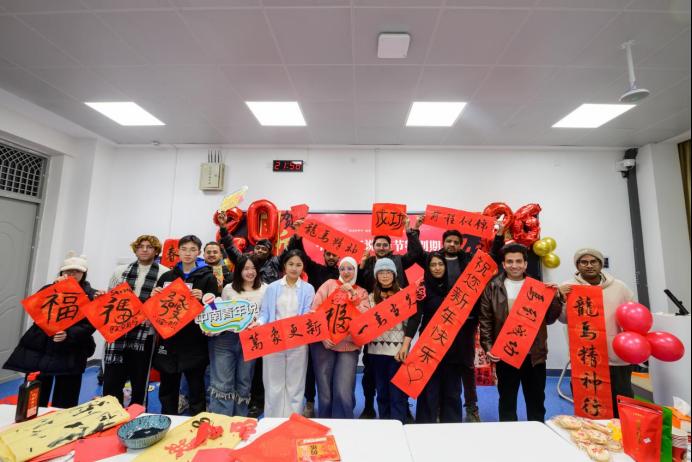 为传承中华优秀传统文化,搭建中外青年文化交流桥梁,1月30日,中南青年说·春节特别期活动在潇湘校区温情启幕。本次活动以“寻年味,品年俗,共赴新春之约”为主题,吸引了25名来自不同国家的青年学子,其中多名留学生是首次近距离接触中国年俗,在沉浸式体验中感受新春魅力与文化底蕴。
